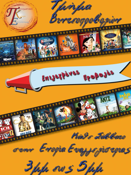 Το τμήμα προβολών κάθε Σάββατο 15:00 με 17:00 παρουσιάζουμε, παλιές καλές παιδικές ταινίες.