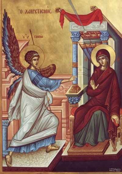 Μέσα στην ανοιξιάτικη ατμόσφαιρα, γεμάτη φως και ζωή, ουρανός, με τη φωνή του Αρχαγγέλου, στέλνει το μήνυμα της χαράς. Η εορτή του Ευαγγελισμού είναι η εορτή της άνοιξης όχι μόνο της φύσεως αλλά κυρίως του ανθρώπου, που απεργάζεται τη λύτρωση και σωτηρία και του ανθρώπου και τη της φύσεως, γιατί και η φύσις γιορτάζει την ελευθέρωσή της από τους συστεναγμούς με τον αποστάτη άνθρωπο. Πριν από τόσους αιώνες εκεί στη μακρινή ασήμαντη Ναζαρέτ, έσμιξαν το